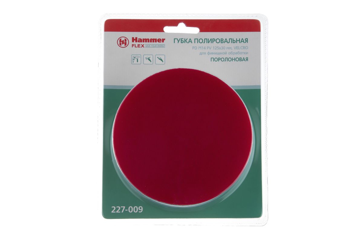 Губка полировальная Hammer Flex 227-009 PD M14 PV 125х30 мм для финишной обработки, поролоновая