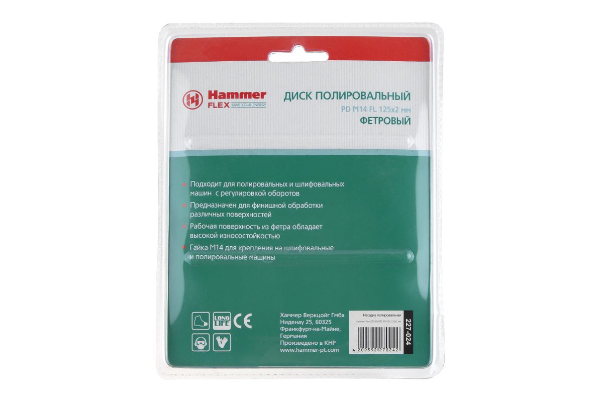 Диск полировальный Hammer Flex 227-024 PD M14 FL 125x12 мм фетр, с наклоном, для шлифмашин