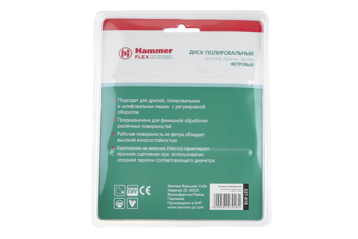 Диск полировальный Hammer Flex 227-018 PD M14 FL 125x6 мм войлок, на липучке