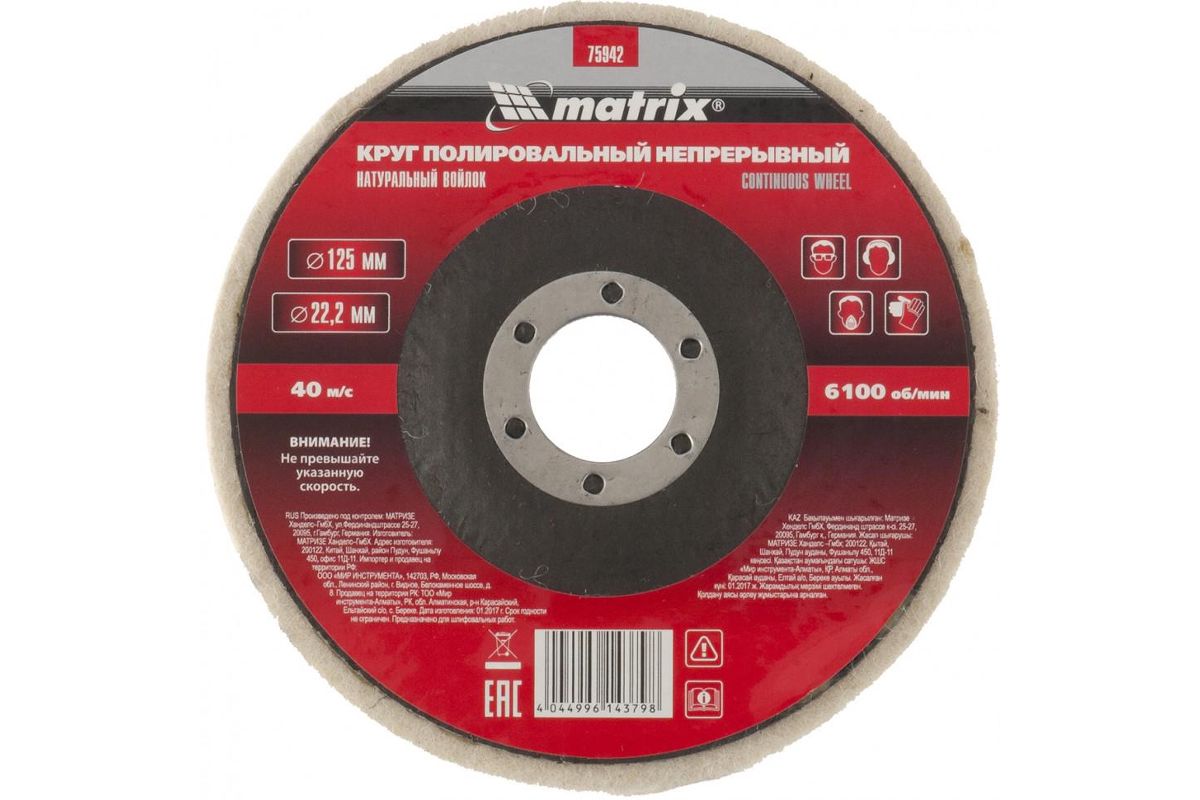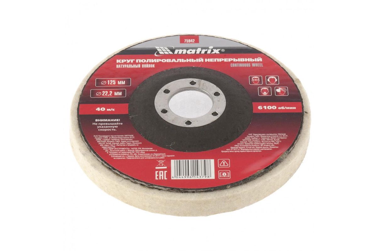 Круг полировальный MATRIX 75942 непрерывный 125x22.2мм из натурального войлока