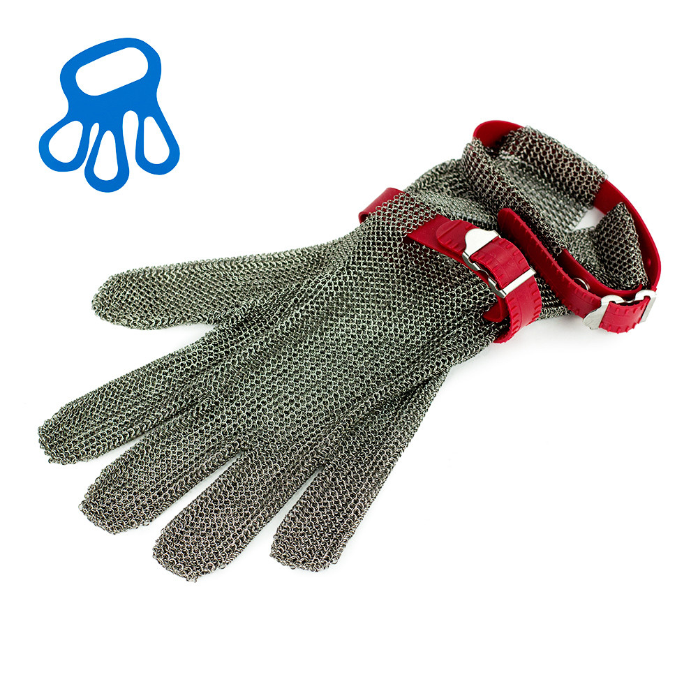 Самый популярный тип перчаток в мясоперерабатывающей промышленности. Перчатки из металлической сетки обеспечивают превосходную защиту, удобство и комфорт. Пластиковый ремешок улучшает уход от бактерий. Двусторонняя - вывернуть наизнанку для другой руки. Размер кольца из нержавеющей стали: внешний диаметр: 3,81 мм, диаметр проволоки: 0,53 мм.
