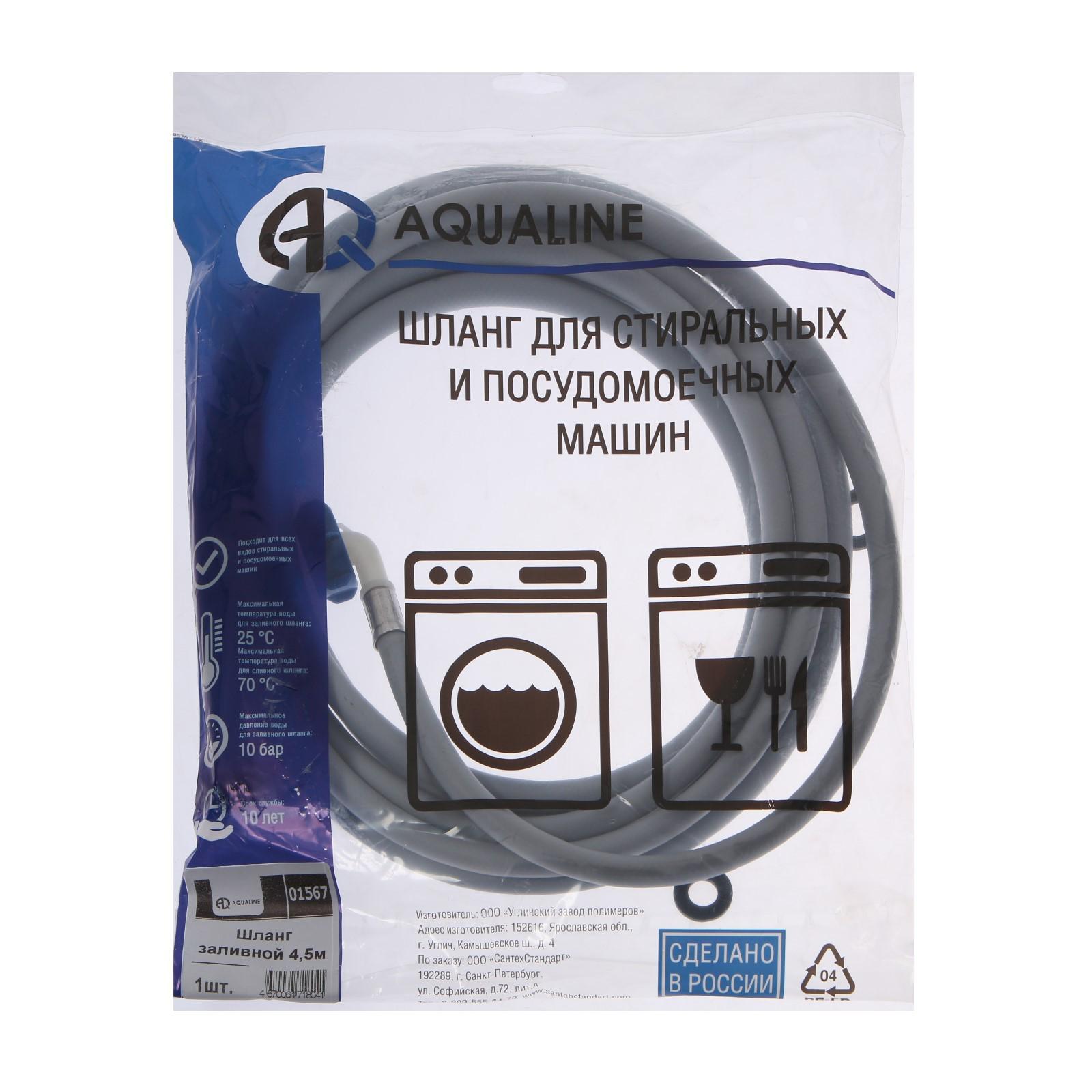 Заливной шланг для стиральной машины AQUALINE 1567, индивидуальная упаковка, 4.5 м