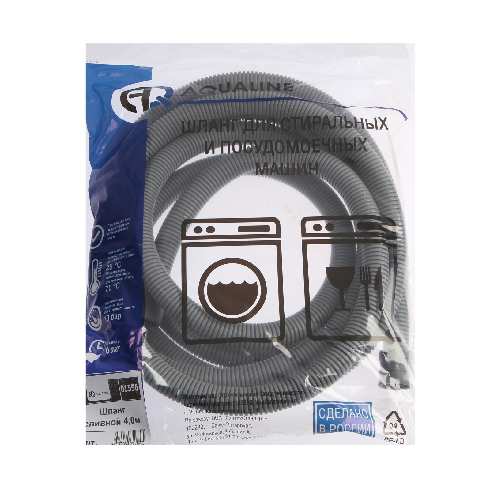 Сливной шланг для стиральной машины AQUALINE 1556, индивидуальная упаковка, 4 м