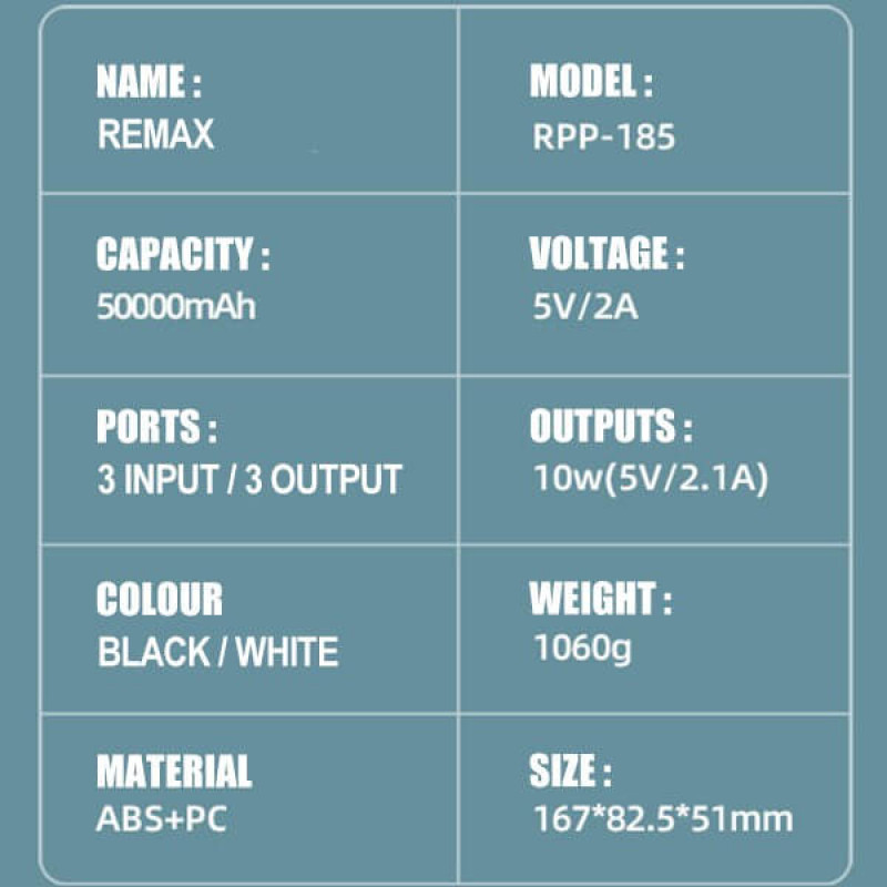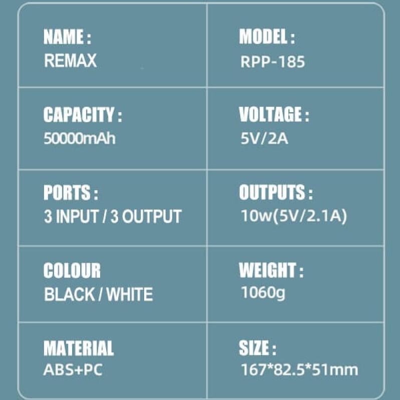 REMAX Leader Series 2.1A Fast Charging Power Bank 50000mAh RPP-185 White