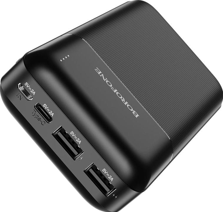 Зовнішній акумулятор BOROFONE BJ16А Cube містить у надійному та компактному корпусі 20000 мАг ємності літій-полімерної батареї. Має два USB-A вихідні порти, що дозволяють заряджати одночасно 2 пристрої. Для зарядки має два вхідні роз'єми: Micro-USB/Type-C. Вихідна напруга 2 А забезпечить стабільну та швидку зарядку смартфона, планшета, камери, навушників тощо. Ємності цієї батареї вистачить на повних 6 зарядок для середнього смартфона, що робить повербанк незамінним у подорожі. Корпус виготовлений із якісного вогнестійкого пластику (ABS+PC). Надійна збірка забезпечить тривалу експлуатацію повербанку, навіть за інтенсивного використання в екстремальних умовах.
