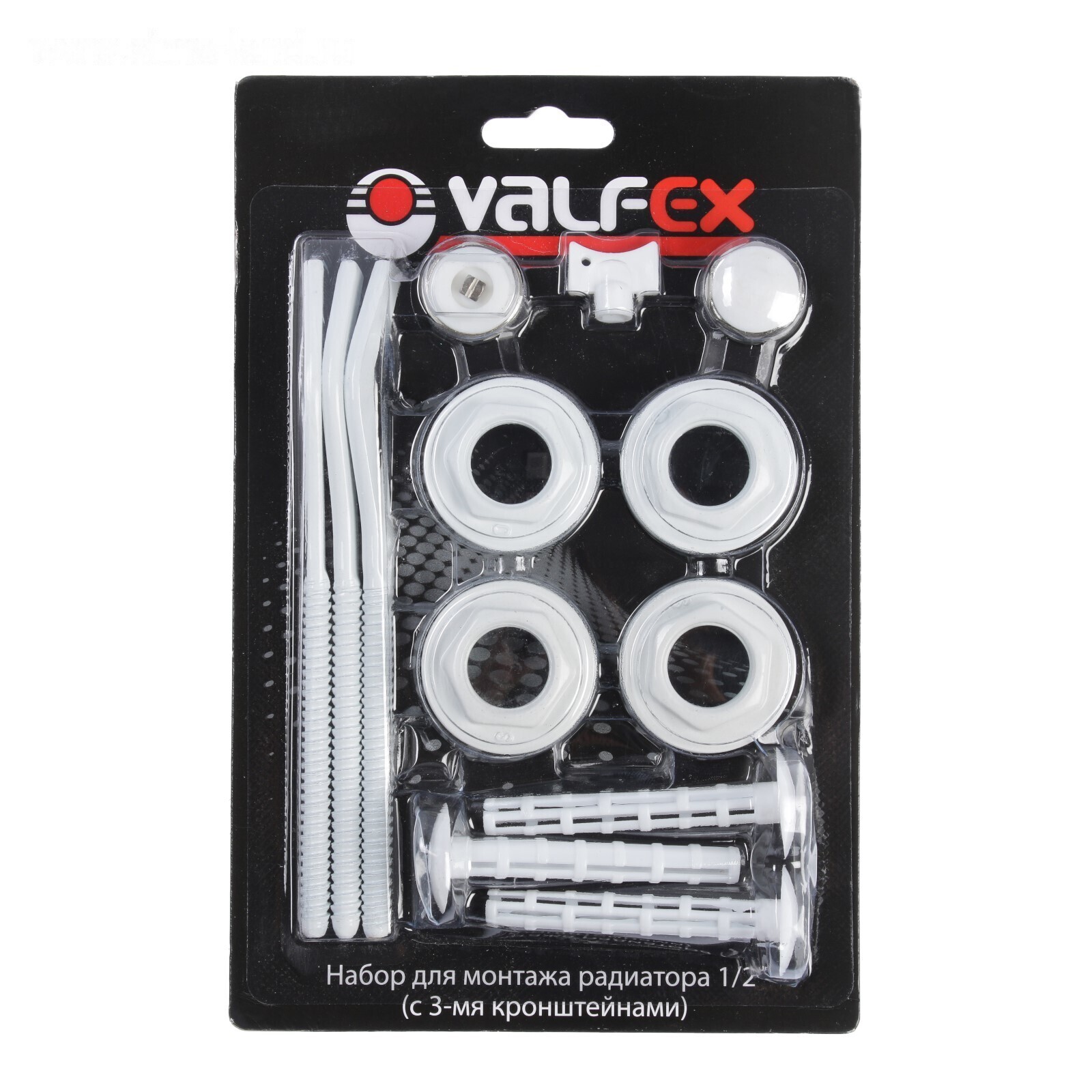 Комплект для подключения радиатора VALFEX, 1"x1/2", с тремя кронштейнами, в блистере