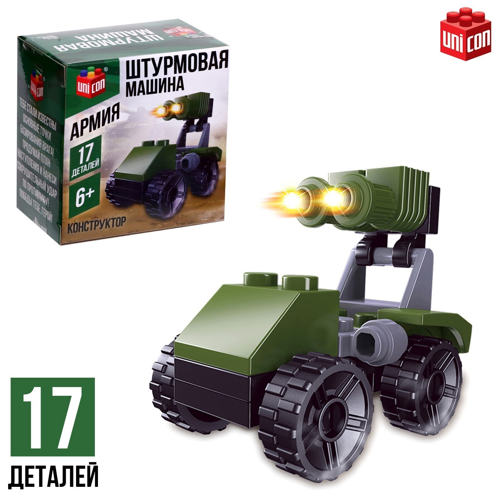 С конструктором торговой марки UNICON ребёнок соберёт «Штурмовую машину» и пополнит свой парк военной техники!