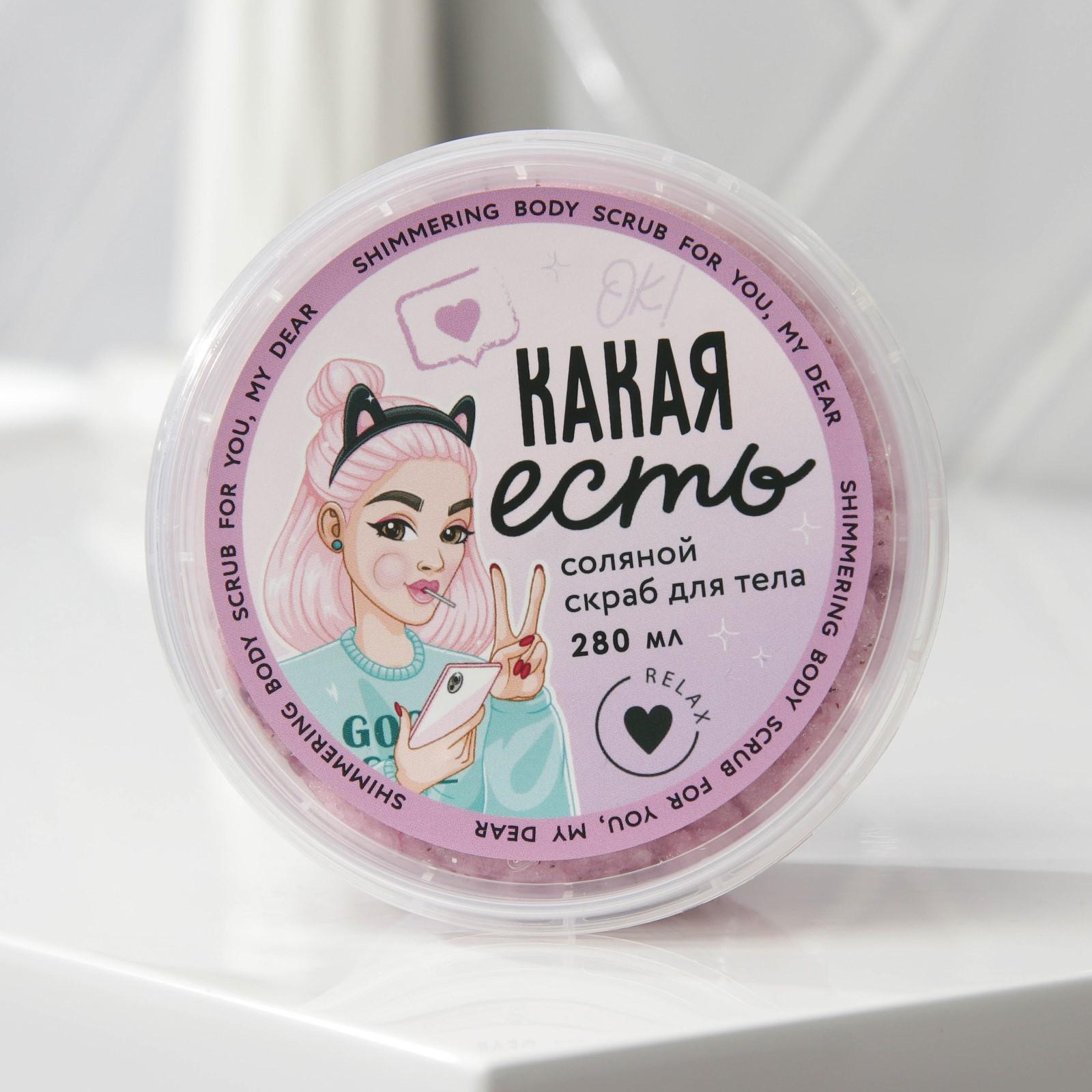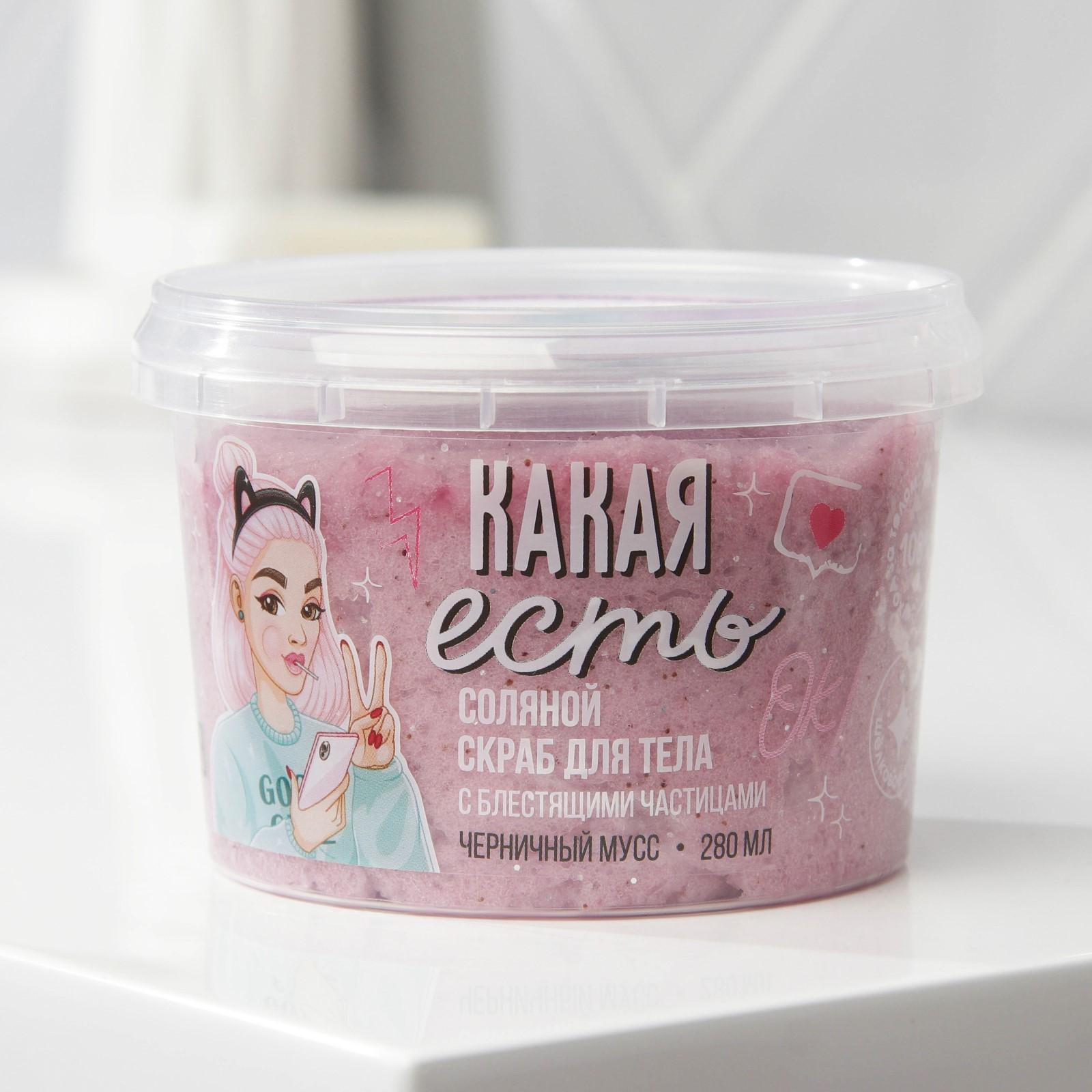 Соляной скраб для тела с блестками «Какая есть», с ароматом черники, 280 мл