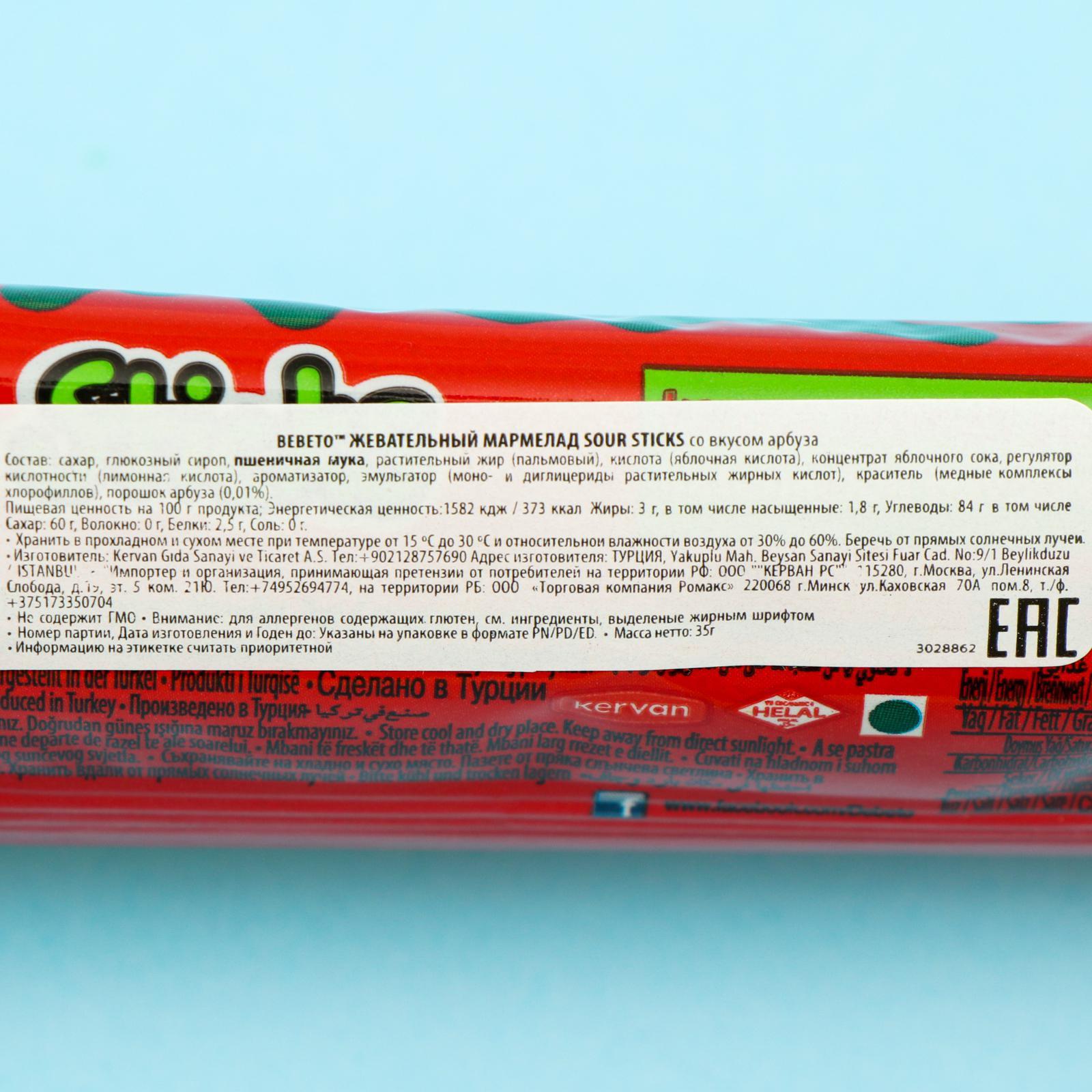 Жевательный мармелад BEBETO SOUR STICKS, со вкусом арбуза, 35 г