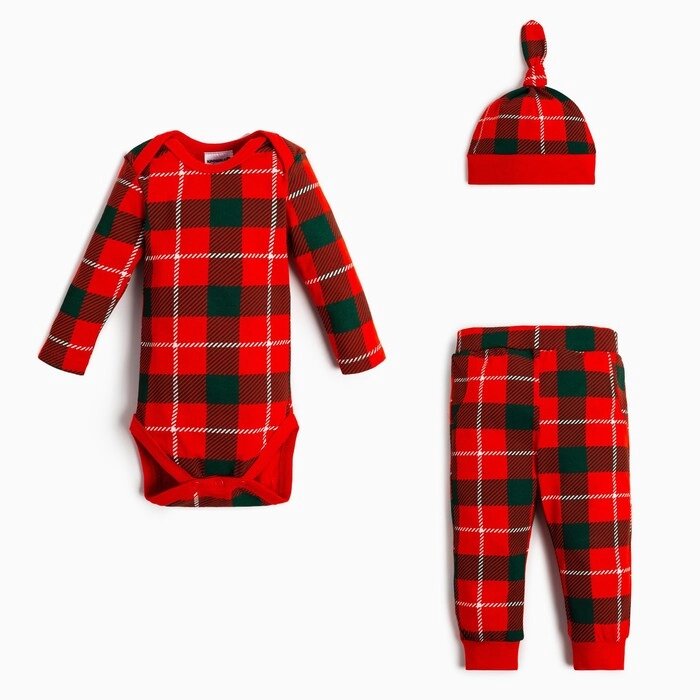 Набор: боди, штанишки и шапочка Крошка Я "Клетка", рост 62-68 см