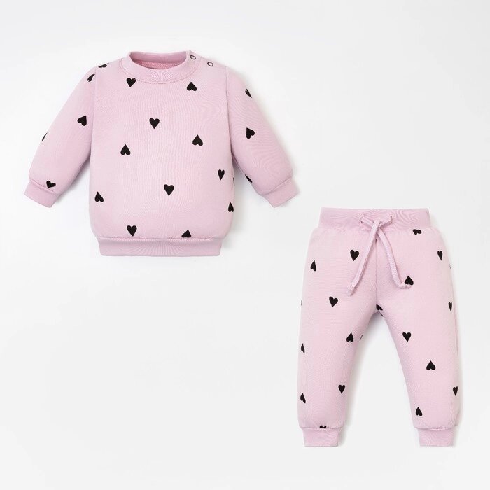 Костюм: толстовка и брюки Крошка Я "Сердечки", рост 86-92 см, розовый