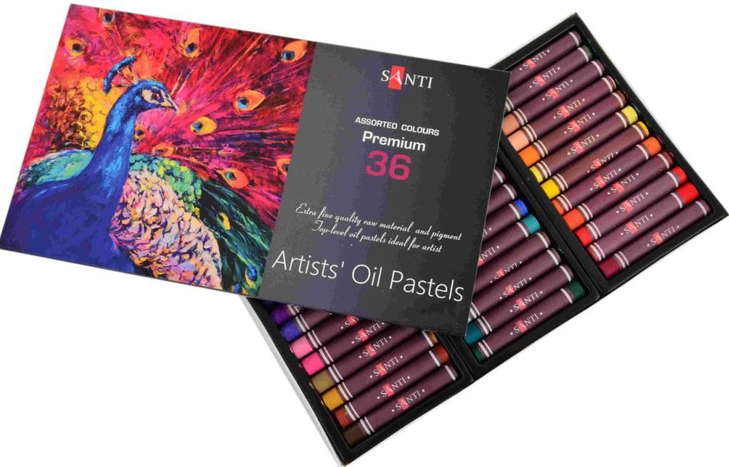 Набір олійної пастелі SANTI. Масляна пастель SANTI може бути використана, як для художніх, так і для декоративних робіт. Пастель від бренду SANTI відрізняється хорошою змішуваність, м'якістю, відмінною покривний здатністю. Має яскраві і інтенсивні кольори.