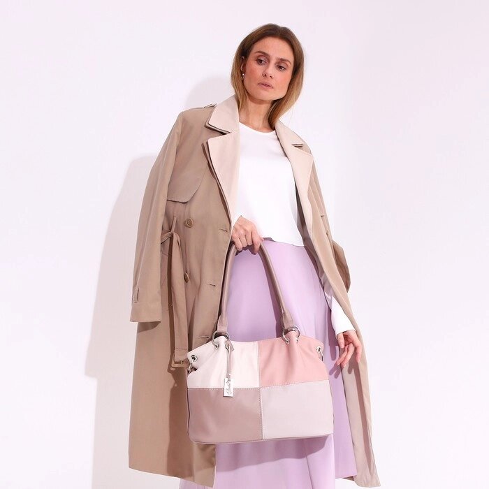 Сумка женская 325, 37*15*29, отд на молнии, н/карман, регл ремень, коричневый/серый/бежевый