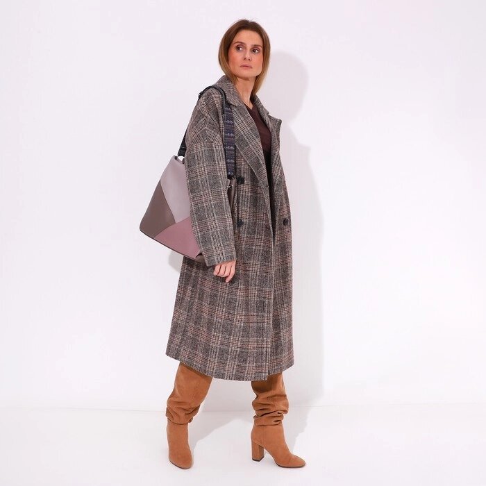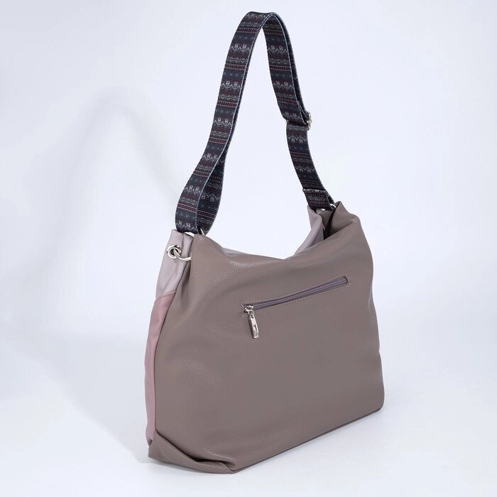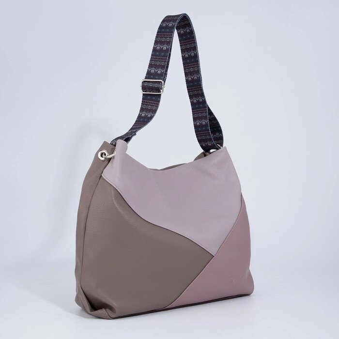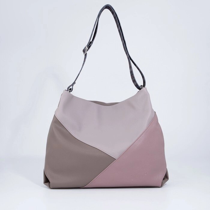 Сумка женская 1001, 37*12*32, отд на молнии, н/карман, регул ремень, серый/бежевый/розовый