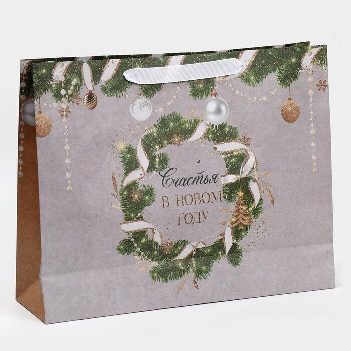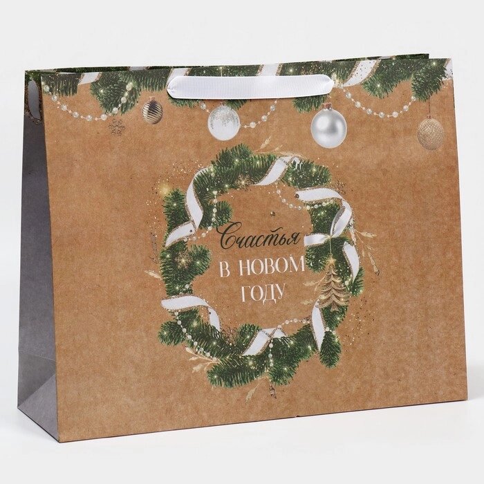 Пакет крафтовый горизонтальный "Счастье рядом", L 40 31 11.5 см