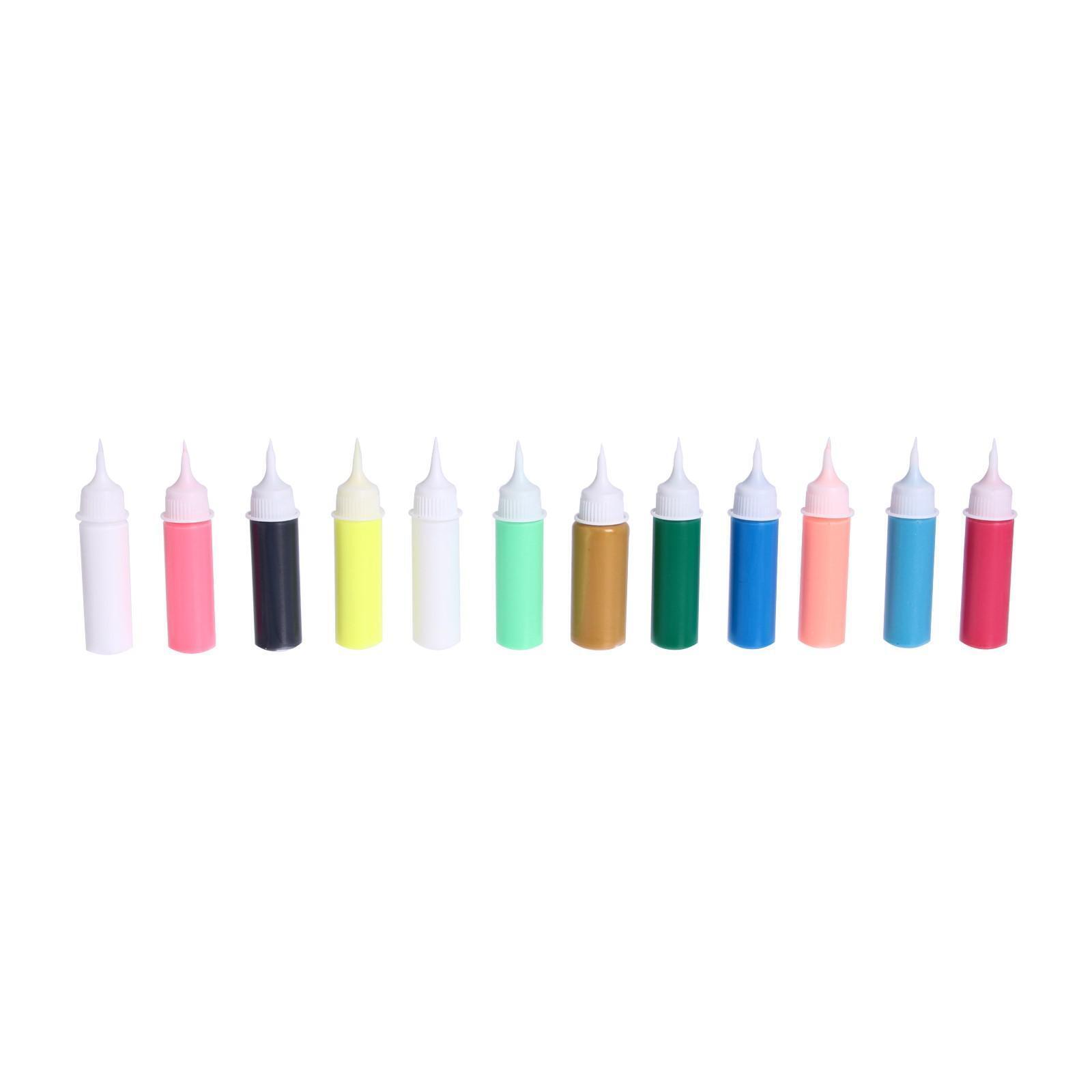 Флаконы с красками имеют носик-дозатор, диаметр отверстия в котором можно выбрать в зависимости от характера работы. Для изготовления аппликаций используются прилагаемые контурные рисунки, входящие в набор или собственные рисунки.