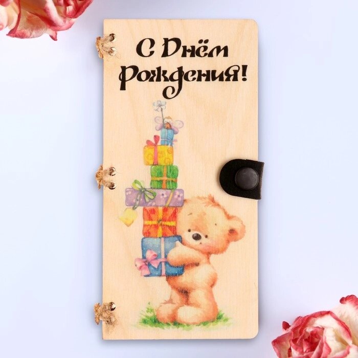 Открытка-конверт на магнитах "С Днём Рождения! мишка, 16,5х8х0,9см