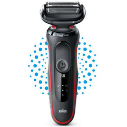 Braun Series 5 51-R1000s BLACK / RED - гладке гоління стало простіше: 3 гнучкі леза цієї електробритви плавно повторюють контури вашого обличчя, а система EasyClean дозволяє швидко і легко чистити, не знімаючи головки для гоління. Ефективний навіть при жорсткій щетині: технологія AutoSense аналізує щетину та регулює потужність залежно від її густоти, захоплюючи та підрівнюючи більше волосся при кожному голінні.
