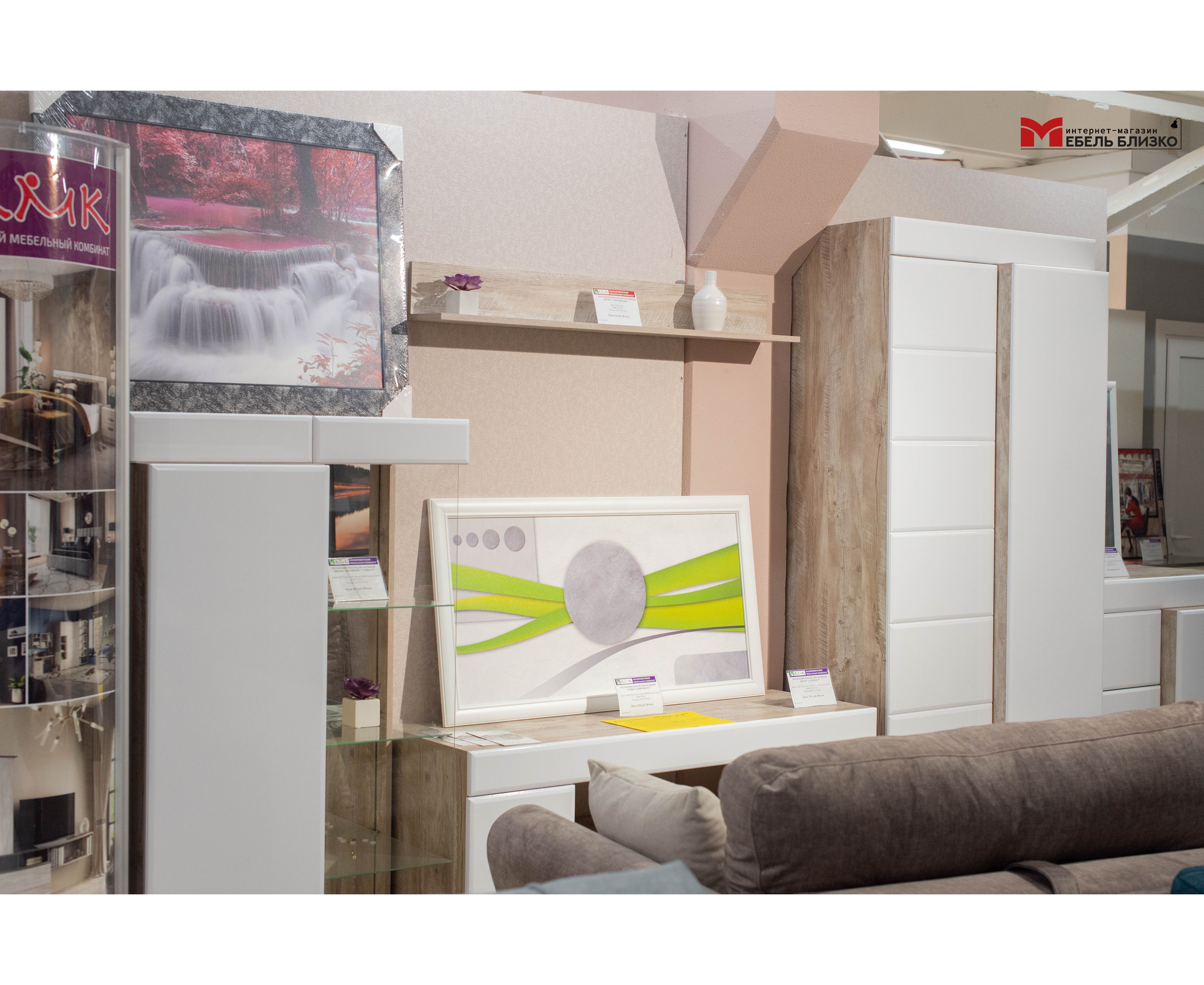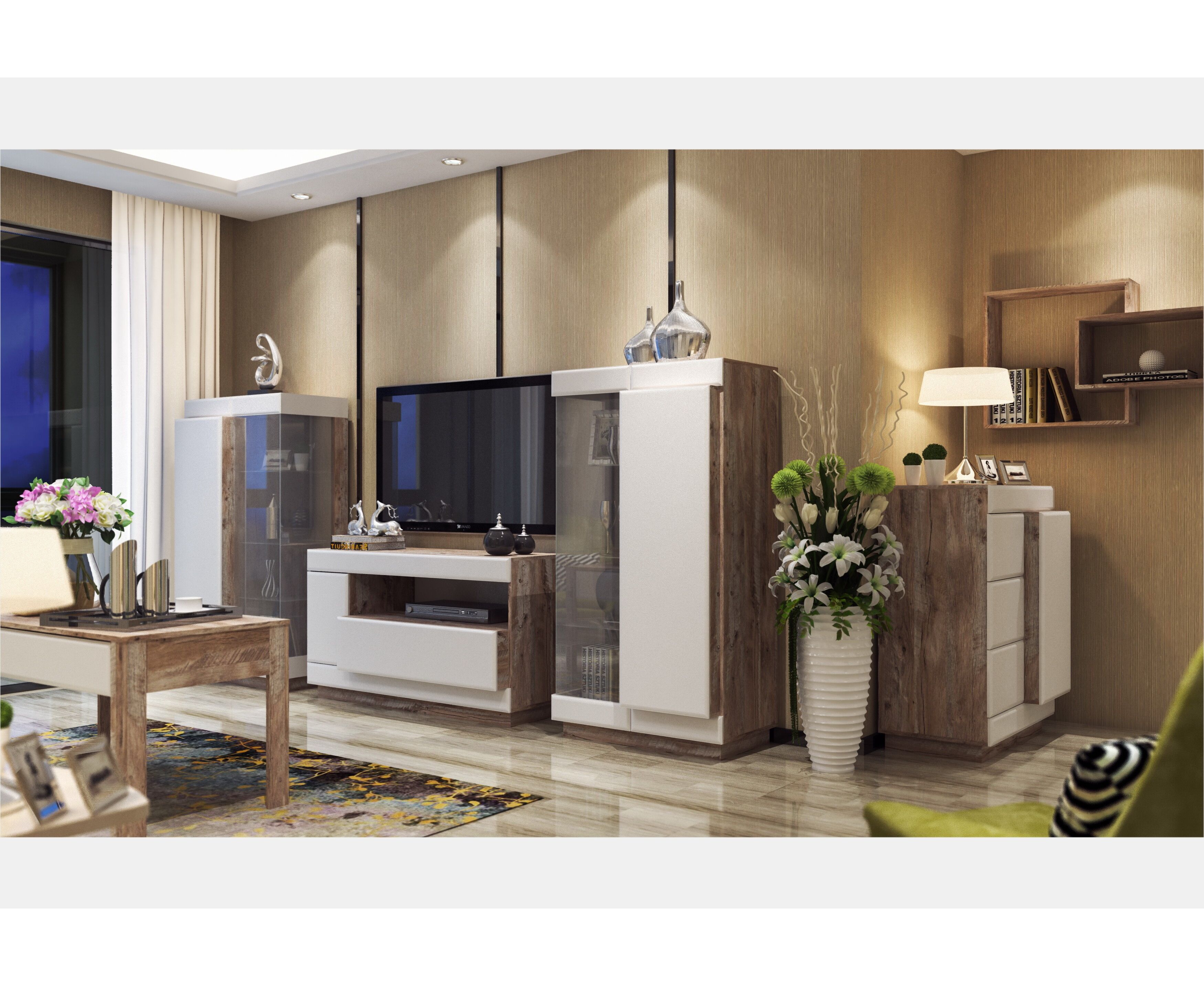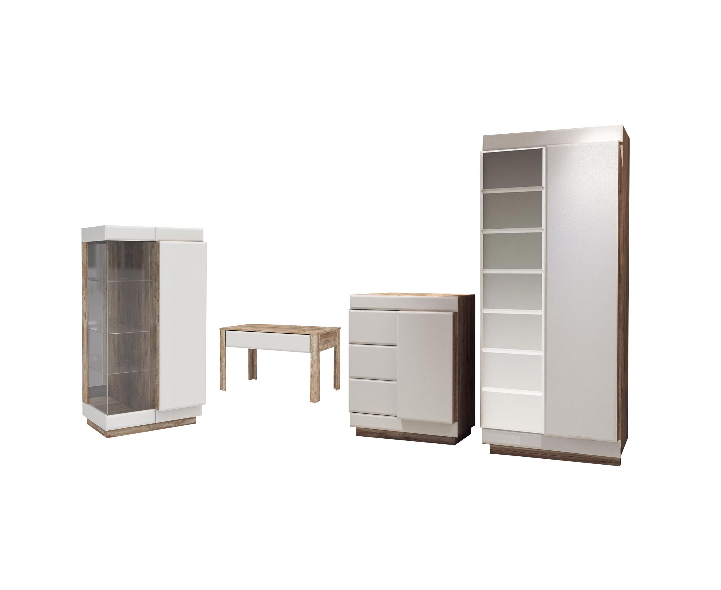 Набор мебели для гостиной Роксет КМК 0554 без комода и стола (дуб юкон/белый глянец)