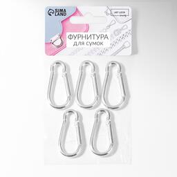 Карабин металлический, 41 × 20 мм, толщина - 3,5 мм, 5 шт, цвет серебряный
