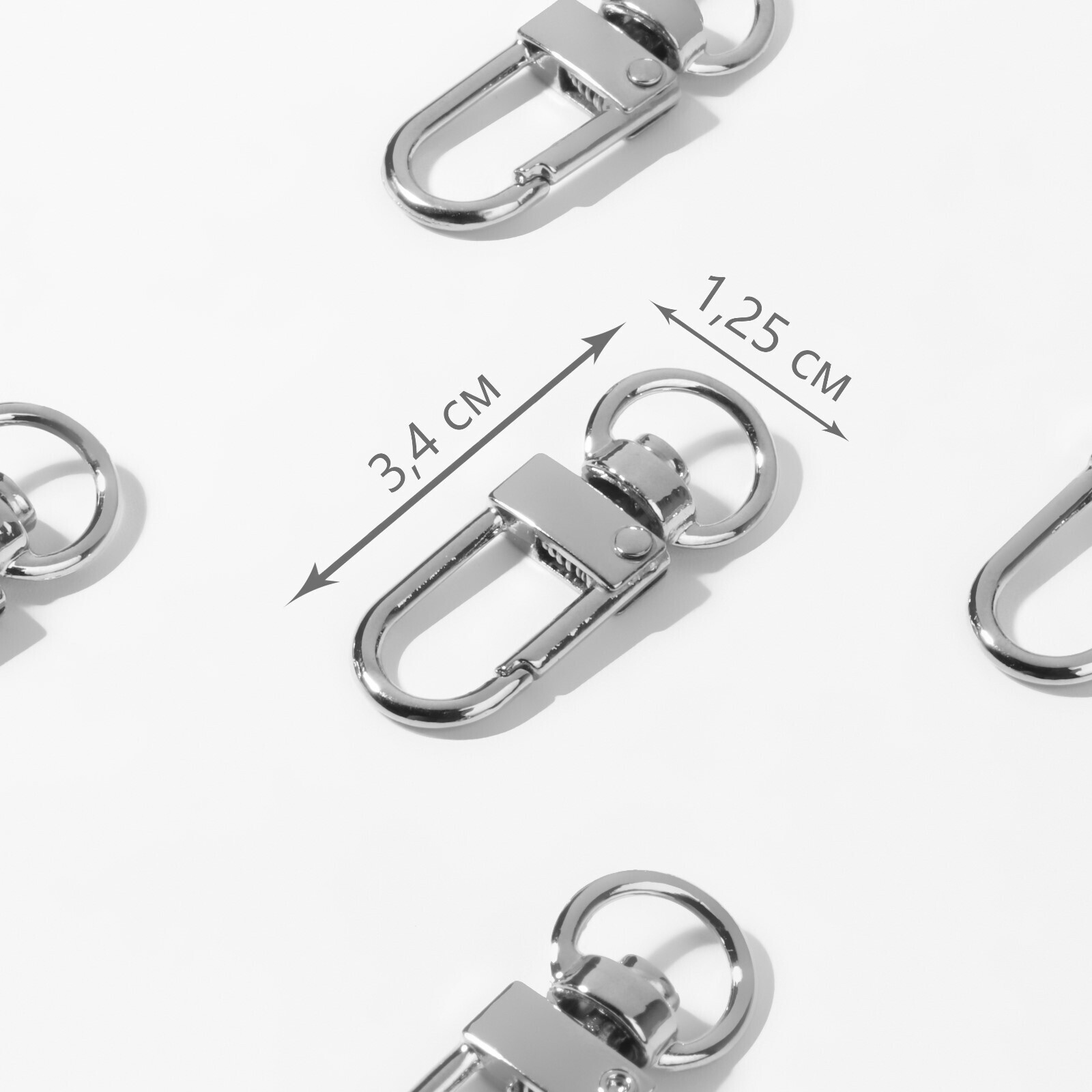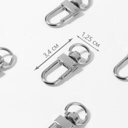 Карабин металлический, 34 × 12,5 мм / 10 мм, 5 шт, цвет серебряный