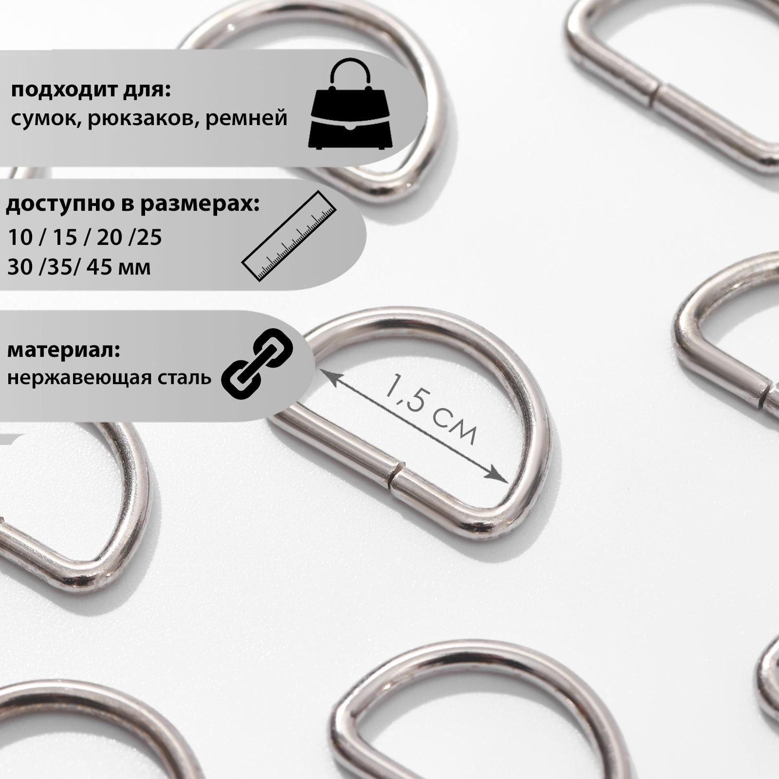 Полукольцо для сумок, d = 15 мм, толщина - 2 мм, цвет никель