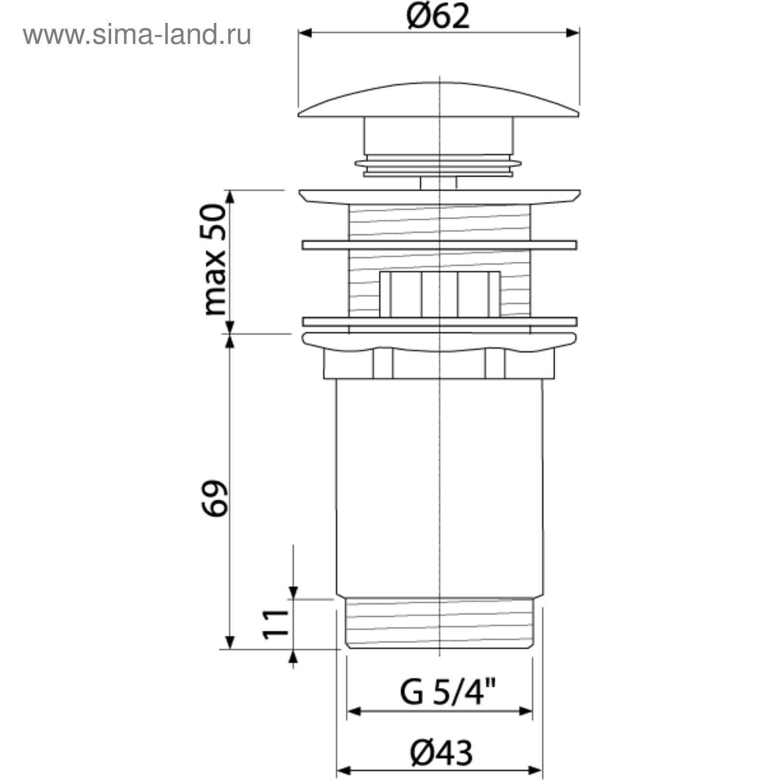 Выпуск автоматический Alcaplast A392, для раковины, 5/4", с большой заглушкой