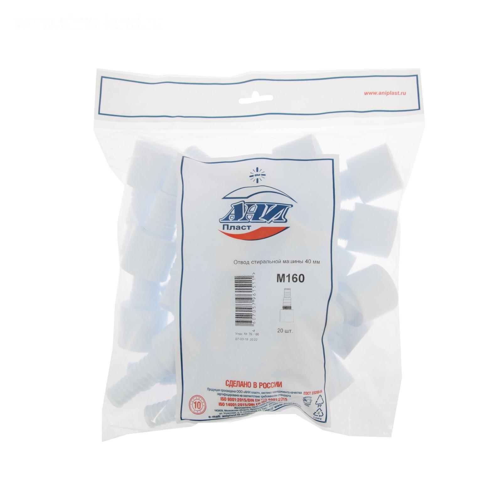 Адаптер для подключения слива бытовой техники "АНИ Пласт" М160, 40 мм