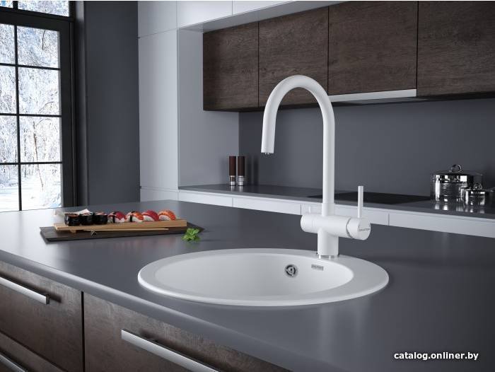 - Монтаж на раковину или столешницу