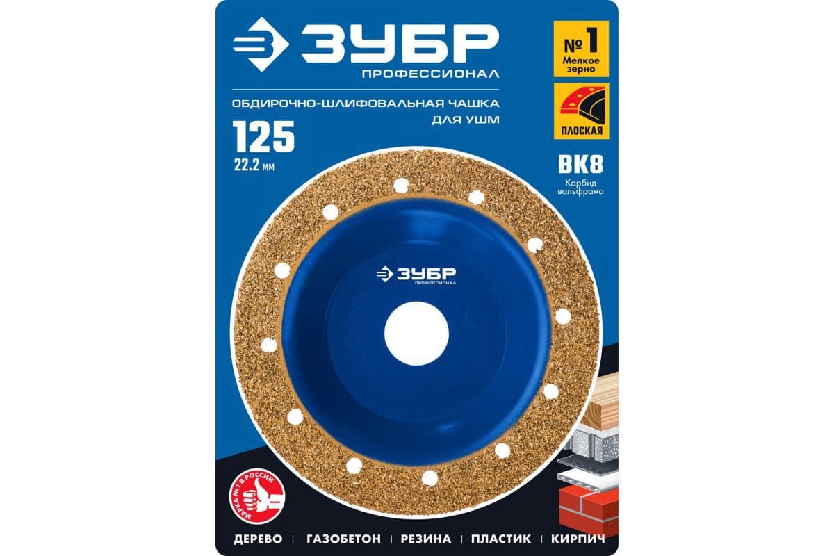 Плоская обдирочно-шлифовальная чашка ЗУБР №1 33430-1 мелкое зерно ВК8, 125 мм