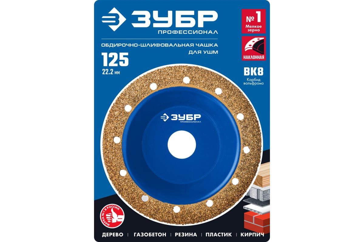 Наклонная обдирочно-шлифовальная чашка ЗУБР №1 33435-1 мелкое зерно ВК8, 125 мм