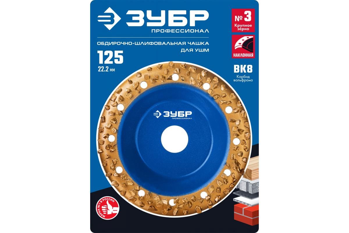 Наклонная обдирочно-шлифовальная чашка ЗУБР №3 33435-3 крупное зерно ВК8, 125 мм