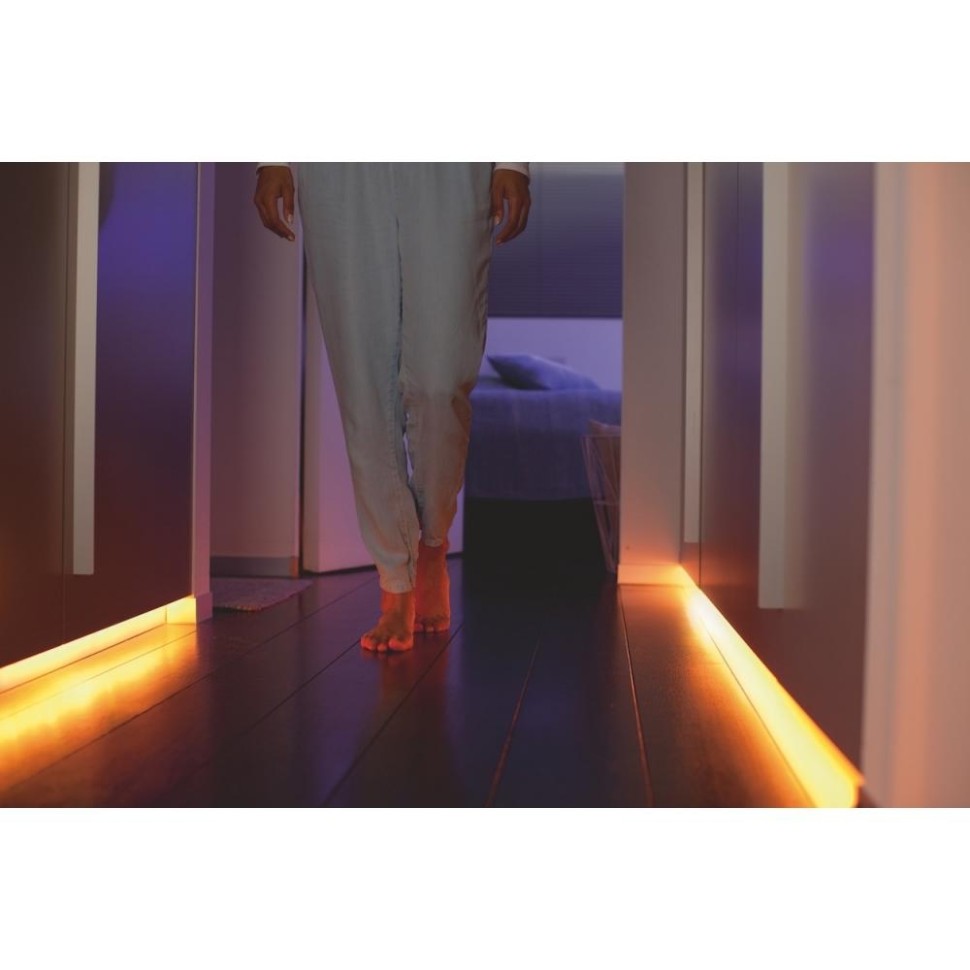 Светодиодные ленты для применения в помещениях отличаются невероятной гибкостью — вы можете придавать им необходимую форму в зависимости от пространства. Используйте дополнительный модуль для больших поверхностей или обрежьте ленту по размеру, чтобы разместить ее в меньшем пространстве. Остаток не пропадет впустую: используйте прилагаемый соединительный зажим, чтобы прикрепить отрезанную полоску к другому базовому блоку светодиодной ленты! Philips Hue работает с Alice, Siri и Google Assistant. Используя простые голосовые команды, можно приглушить свет, сделать его ярче или изменить цвет ламп, независимо от того, хотите ли вы управлять одной лампой или всеми лампами в вашем доме. Для голосового управления потребуются блок управления Philips Hue Bridge и совместимое партнерское устройство. Удлините базовый блок светодиодной ленты до 10 метров, добавив 1- метровые дополнительные модули для покрытия больших поверхностей и расширения областей применения. Возможности безграничны — от яркого освещения ниш до направляющего света в коридоре или на лестнице. Philips Hue Lightstrip Plus обеспечивает высокое постоянство цветов при присоединении дополнительных модулей. Добавьте блок управления (продается отдельно) к вашим интеллектуальным источникам света, чтобы воспользоваться полным набором функций Philips Hue. С помощью блок управления вы можете добавить до 50 интеллектуальных источников света для управления во всем доме. Создайте подпрограммы для автоматизации всего домашнего освещения вашего умного дома. Управляйте своими светильниками, находясь вдали от дома, или добавляйте аксессуары, такие как датчики движения и интеллектуальные переключатели.