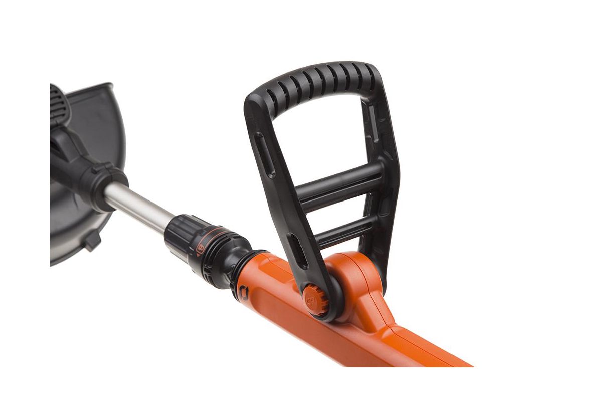 4)Регулируемая дополнительная рукоятка обеспечивает индивидуальную настройку хвата и позволяет отбалансировать триммер для облегчения работы;