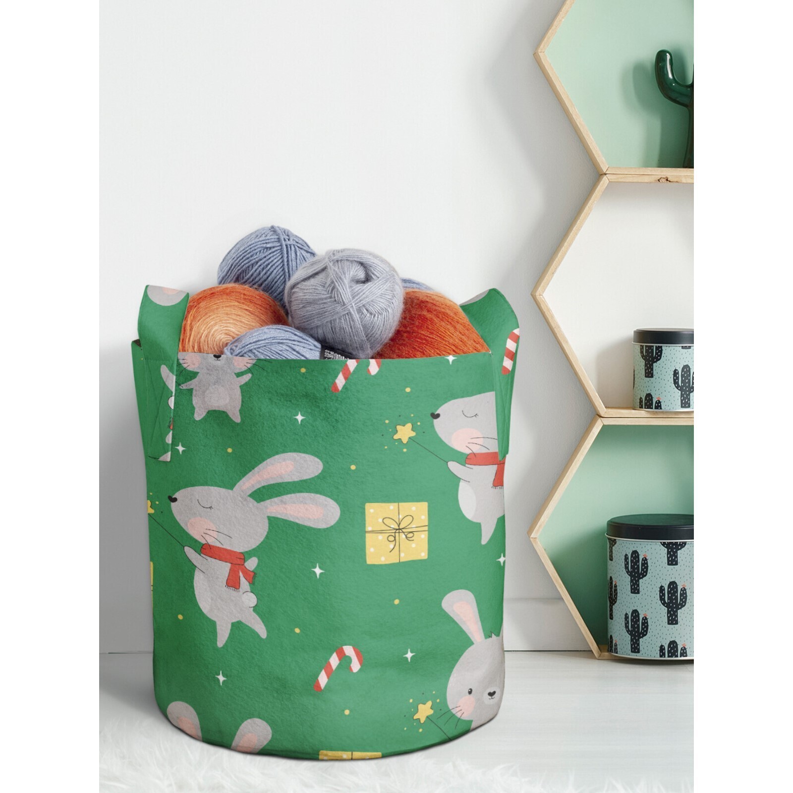 Корзина сохраняет форму благодаря плотной ткани, а с помощью двух ручек её можно переносить в любое удобное место. Ручки изделия выдерживают большую нагрузку, даже если вы сложите в неё овощи и фрукты.