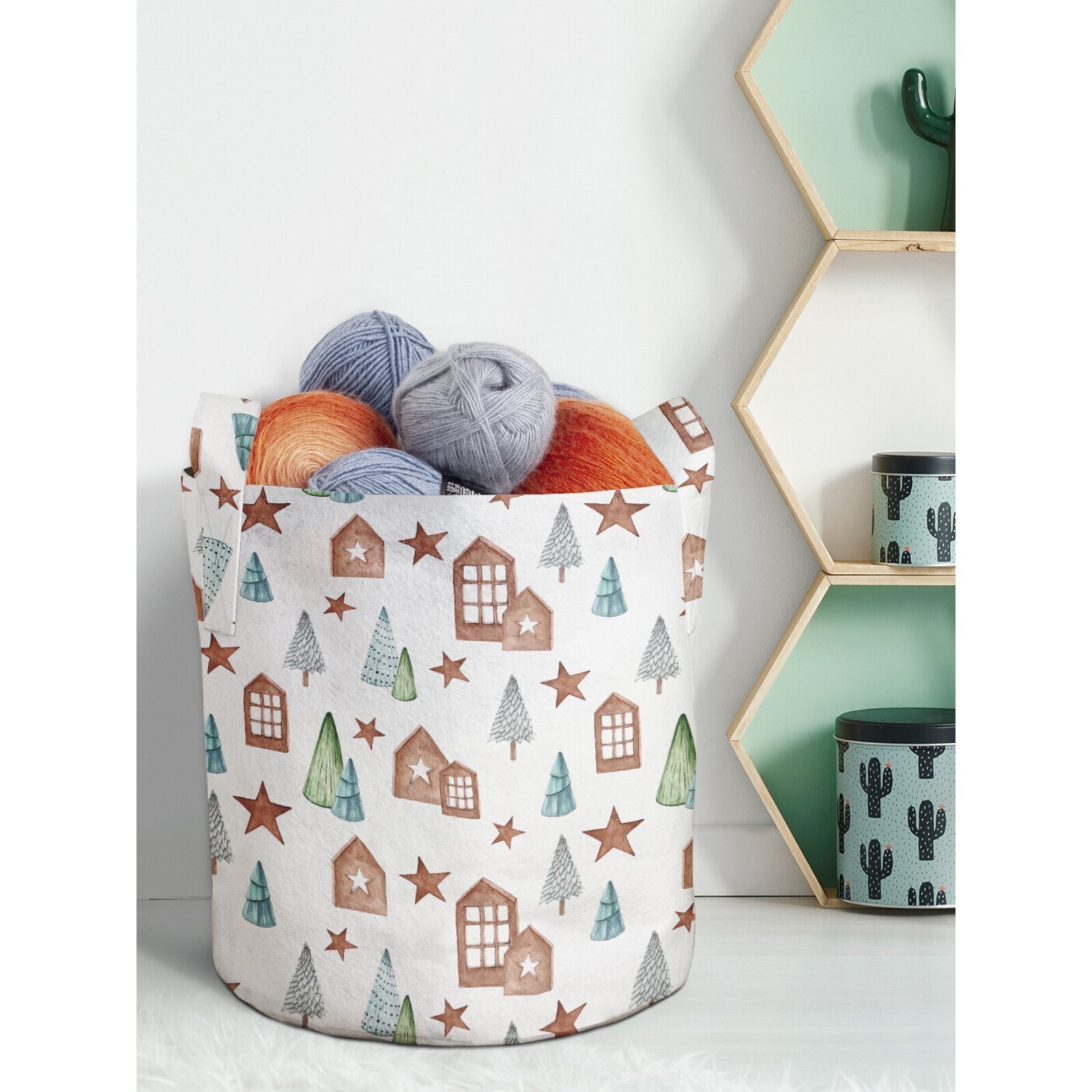 Корзина сохраняет форму благодаря плотной ткани, а с помощью двух ручек её можно переносить в любое удобное место. Ручки изделия выдерживают большую нагрузку, даже если вы сложите в неё овощи и фрукты.