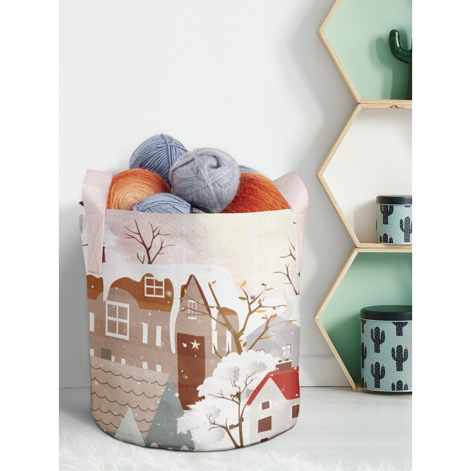 Корзина сохраняет форму благодаря плотной ткани, а с помощью двух ручек её можно переносить в любое удобное место. Ручки изделия выдерживают большую нагрузку, даже если вы сложите в неё овощи и фрукты.
