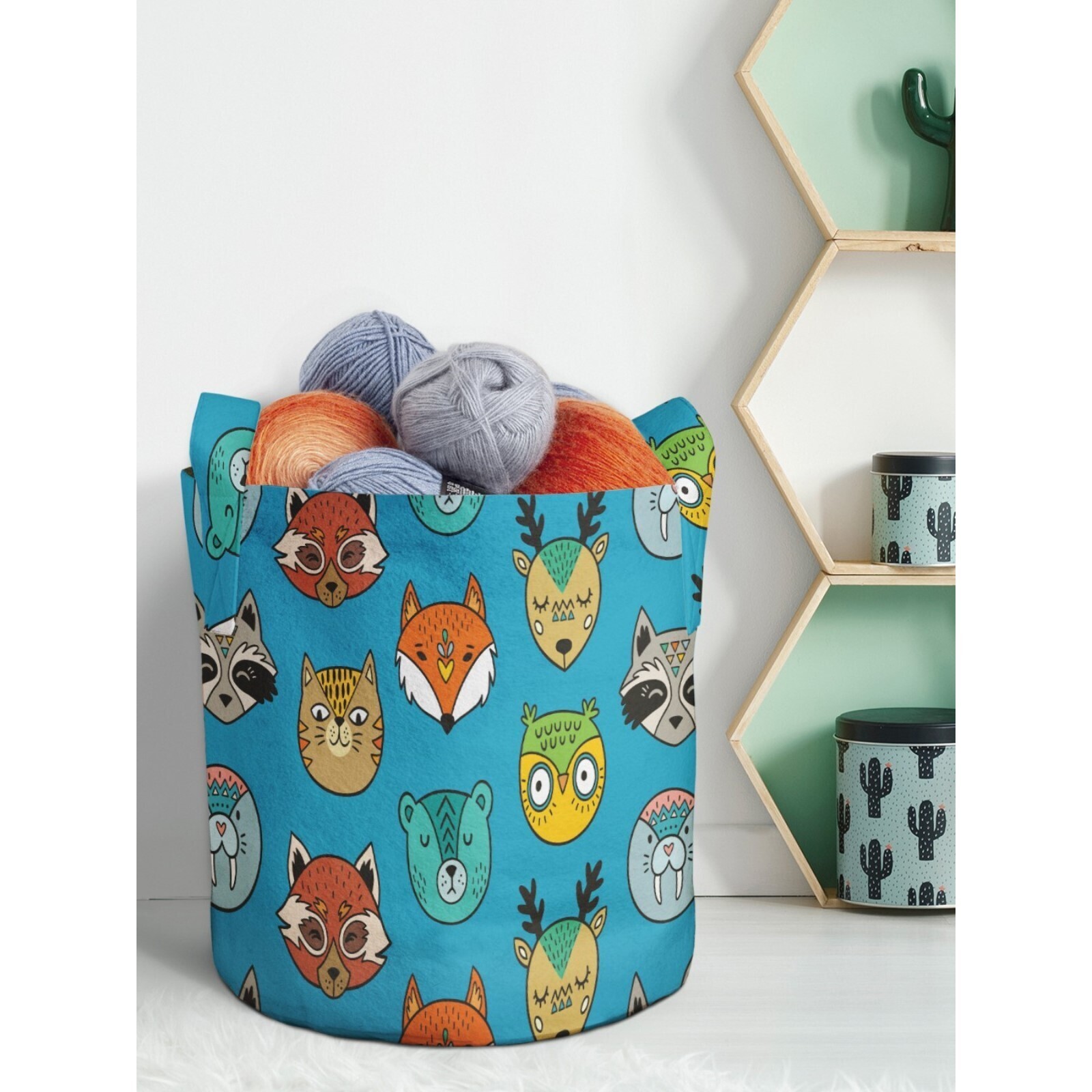 Мягкая текстильная корзина «Енот, Лиса и Кот» для хранения вещей и игрушек, 19 л.