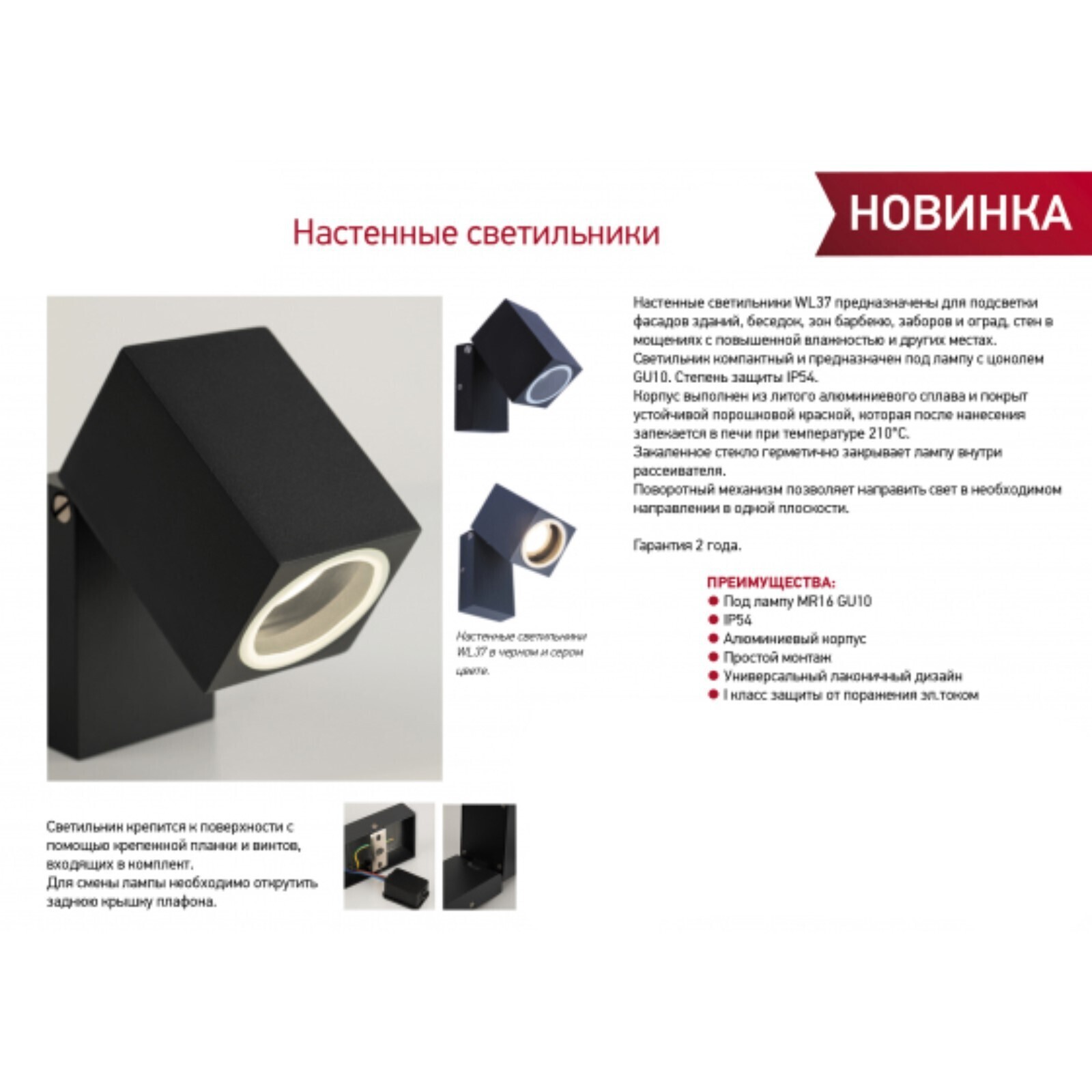 Бра WL37 BK MR16/GU10, черный 9,5х6,6х10 см