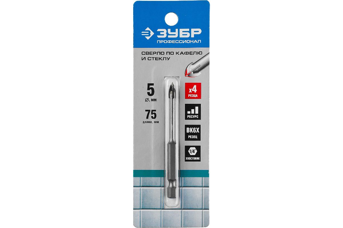 Сверло ЗУБР ''ПРОФЕССИОНАЛ'' 29845-05_z01 по кафелю/керамике/стеклу 4 реж.лезвия 6-ти гран.хвост.5мм