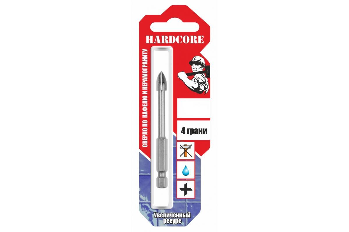 Сверло HARDCORE 151005 по керамике и стеклу 5 мм, 4 грани Сверло по керамической плитке и стеклу, диаметр 5 мм., 4 грани, шестигранный хвостовик