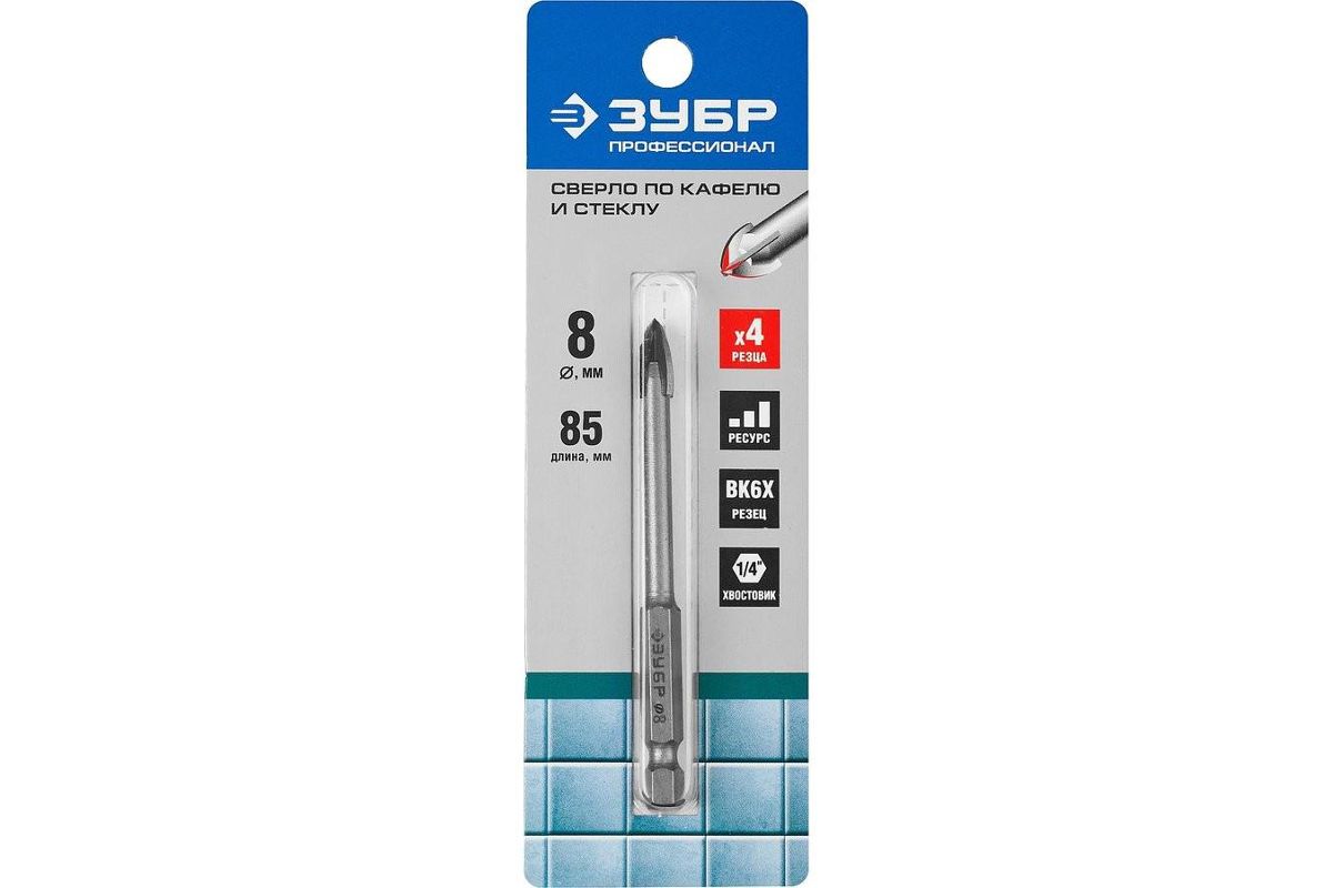 Сверло ЗУБР 29845-08_z01 по кафелю керамике стеклу с четырьмя режущими лезвиями шестигранный хвост