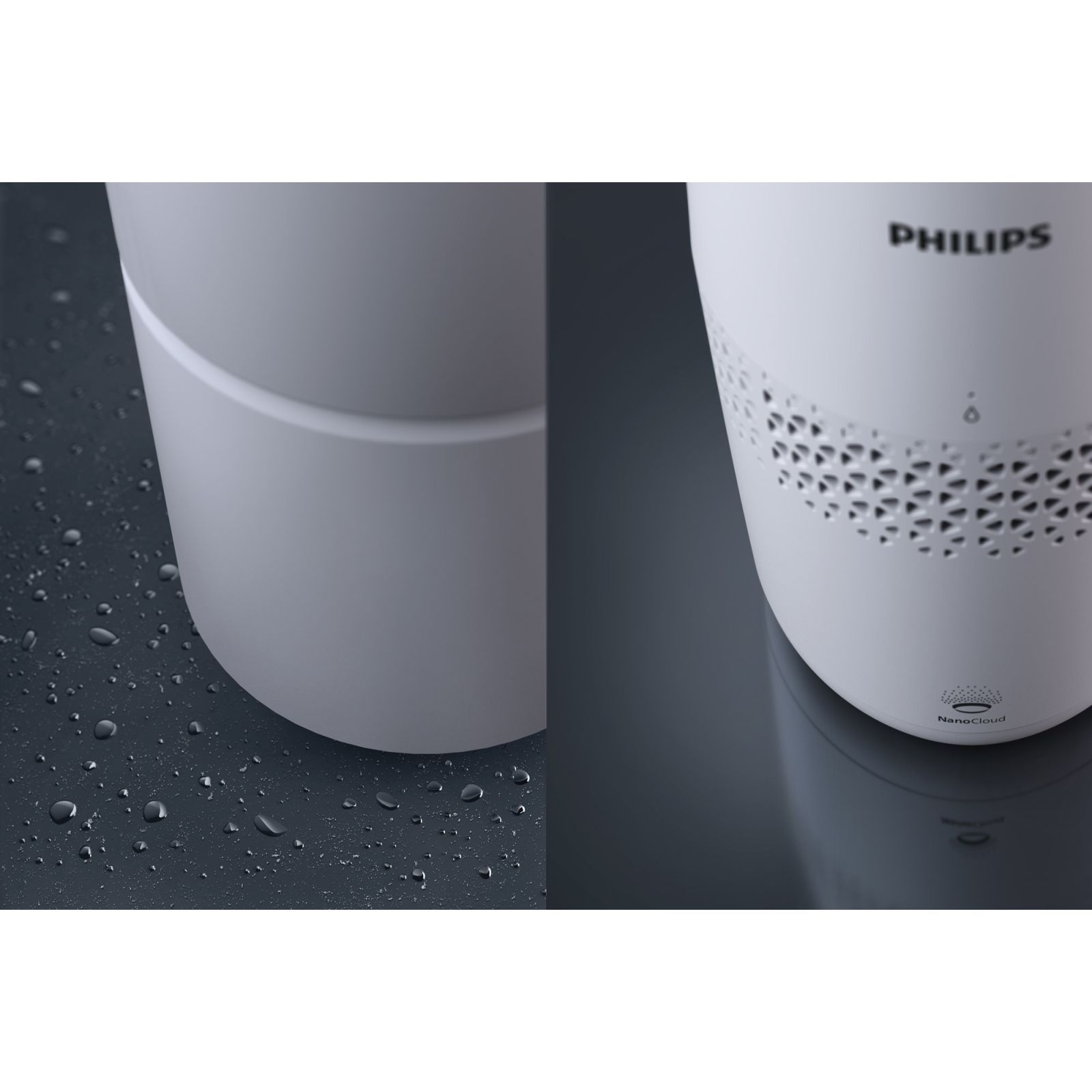 Невидимі молекули, що виділяються зволожувачем з технологією NanoCloud, не призводять до утворення білого нальоту та вологих плям у кімнаті. Більші краплі можуть намочити навколишні предмети та переносити мінерали, що залишають білий наліт на сусідніх поверхнях. Частинки, що виділяються зволожувачем з технологією NanoCloud, надто маленькі, тому не можуть переносити мінерали, що ефективно запобігає утворенню нальоту та плям.