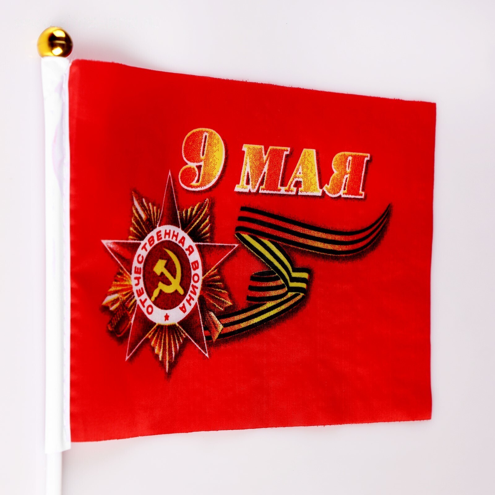 Флаг "9 Мая", 20 х 28 см, шток 40 см, полиэфирный шёлк