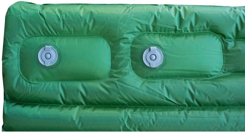 - додатковий подвійний клапан дозволяє дуже швидко здути килимок, а при необхідності похитати повітря традиційним способом