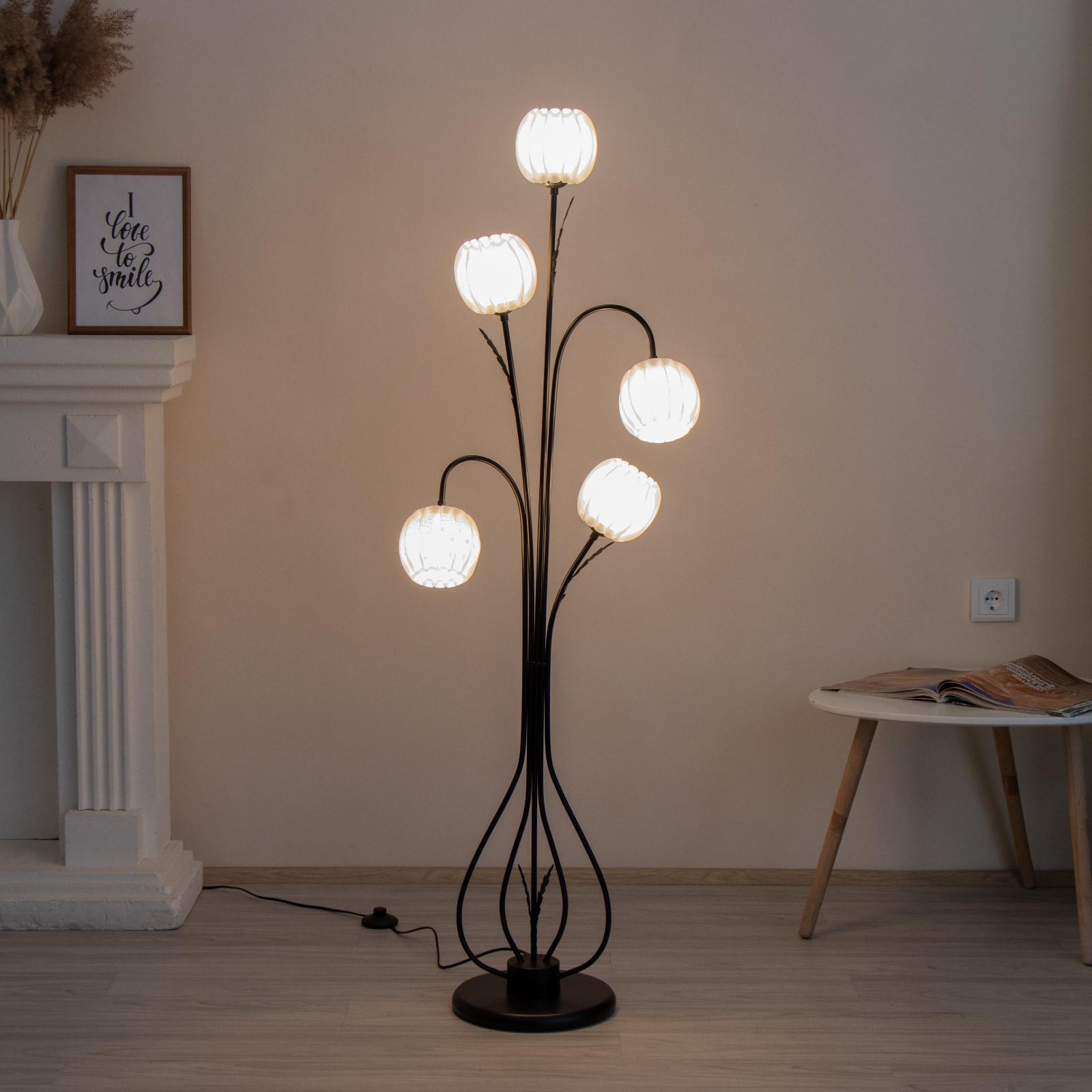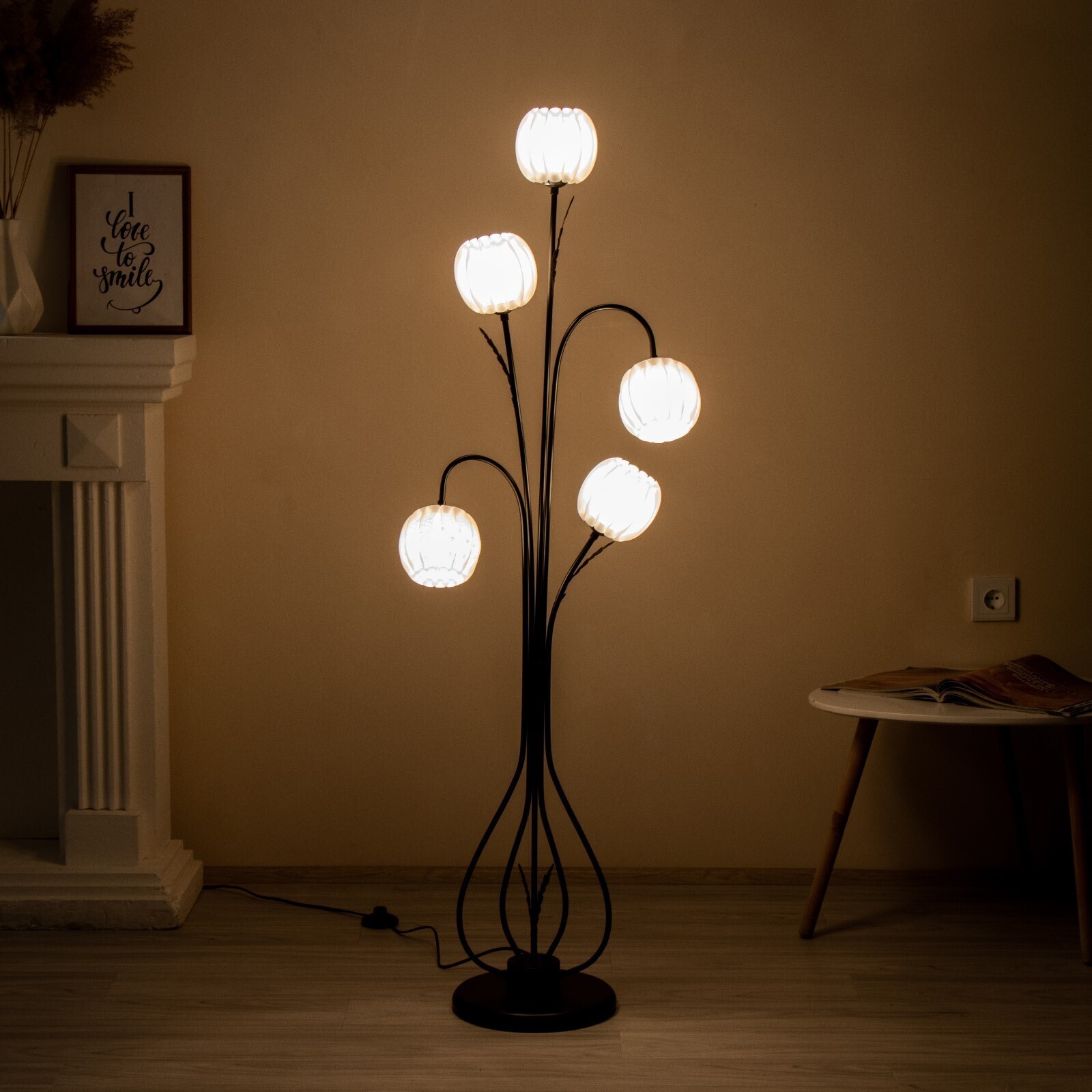 Торшер "Лотос" 5хE27 15Вт черный 47х34х148 см