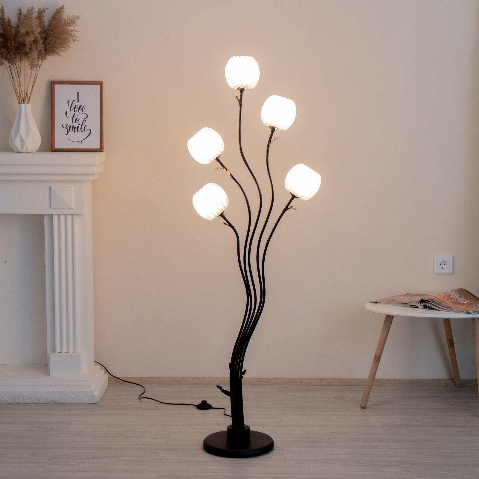 Торшер "Лотос" 5хE27 15Вт черный 48х28х145 см