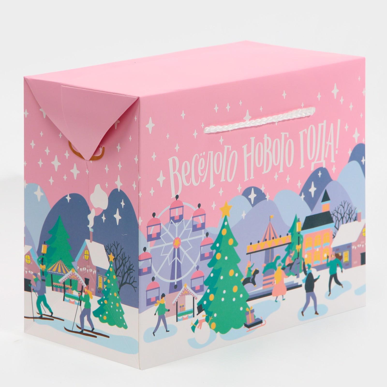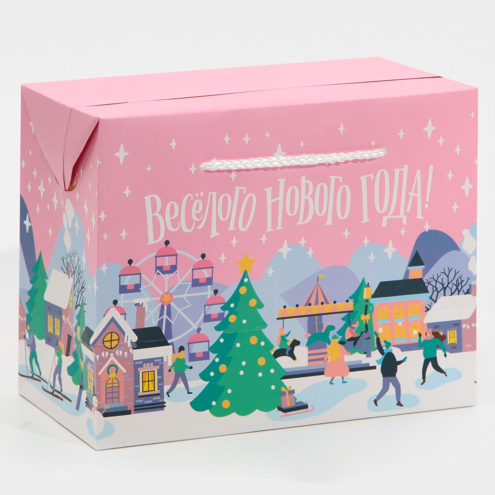 Пакет-коробка «Веселого Нового года», 23 × 18 × 11 см