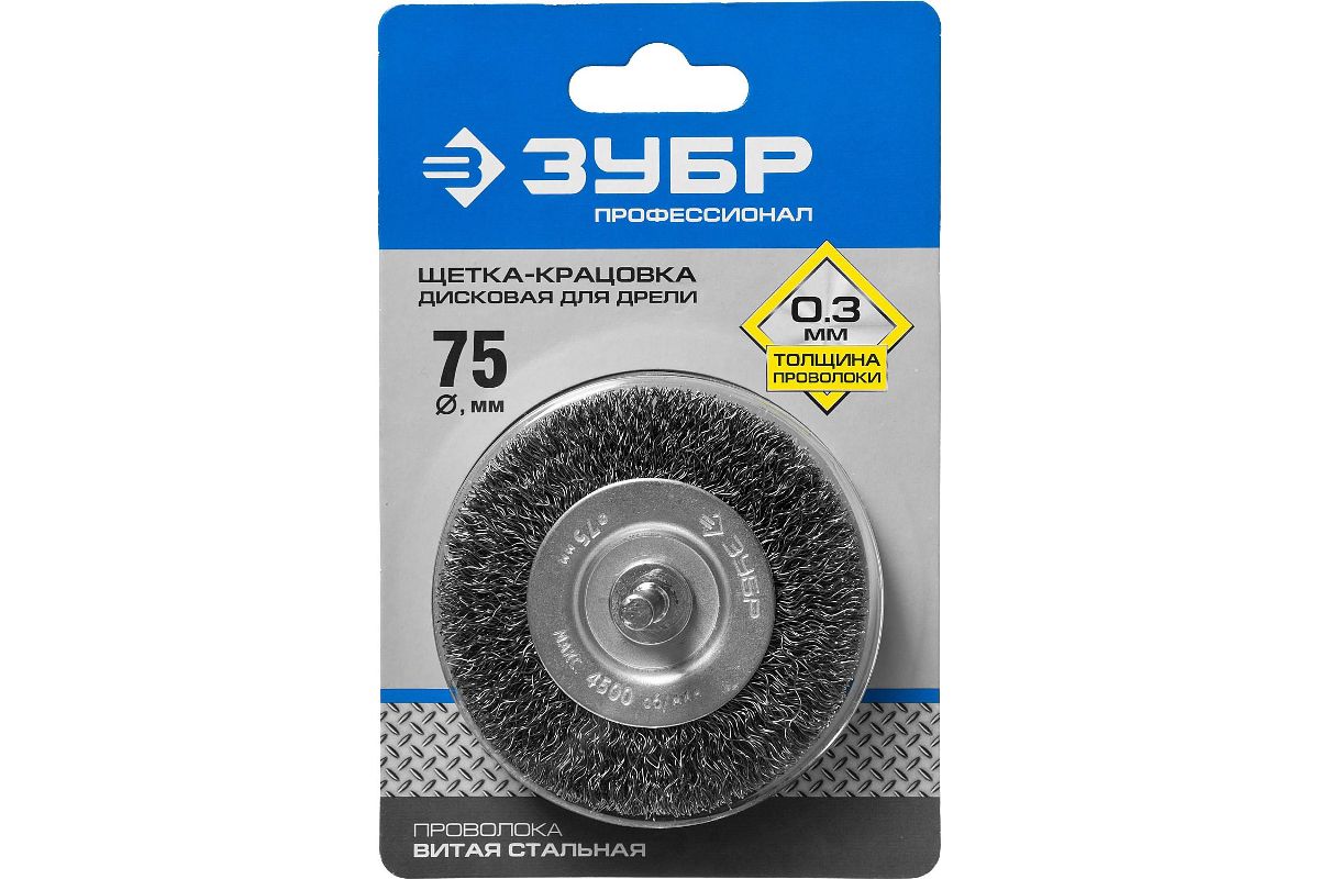 Щетка дисковая ЗУБР ''ПРОФЕССИОНАЛ'' 35198-075_z02 для дрели, витая стальная проволока 0,3мм, 75мм