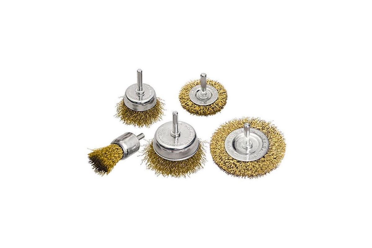 Набор кордщеток MATRIX 5шт. для дрели гофрированная латунированная сталь (74492)